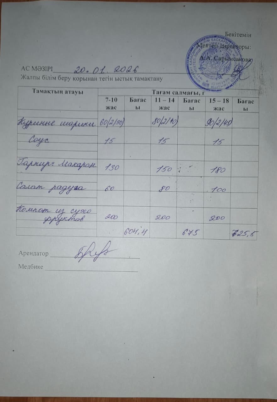 2026 жылдың 20 январьдағы ас мәзірі » «№41 А.Макаренко атындағы мектеп лицей» КММ