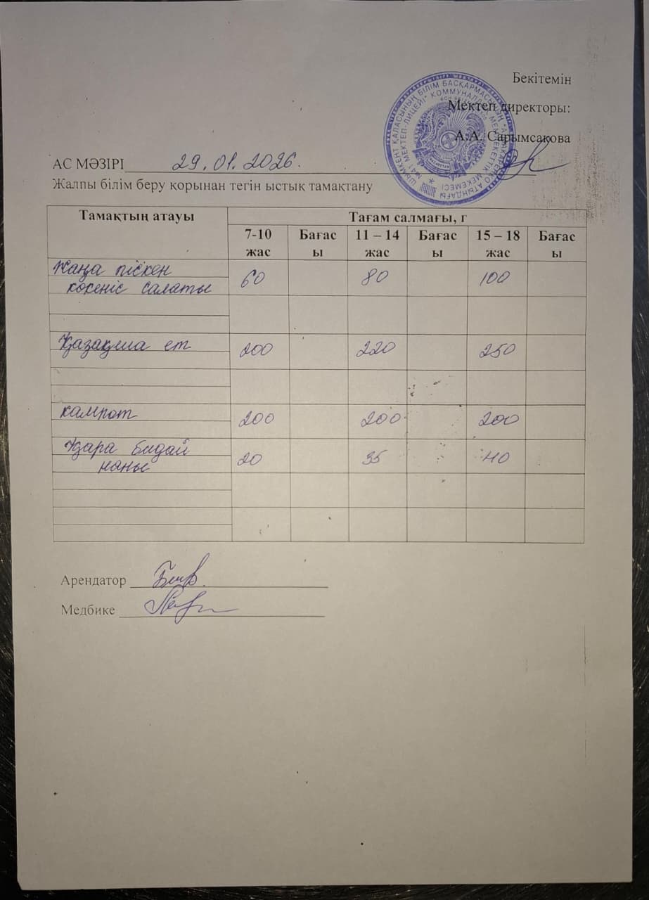 2026 жылдың 29 январьдағы ас мәзірі » «№41 А.Макаренко атындағы мектеп лицей» КММ
